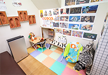 待合室には漫画、雑誌を完備。キッズルームもあり明るい雰囲気です。